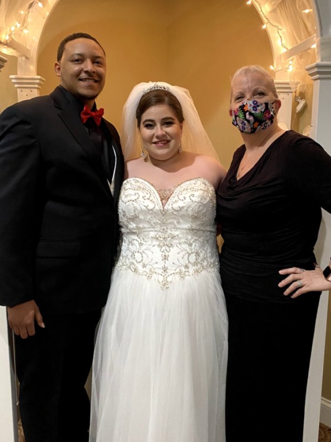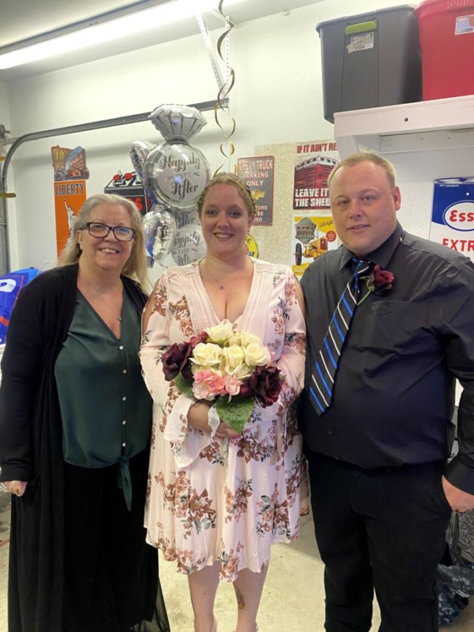 Brittany and Luke saw a change to a small intimate gathering of family and friends at home. The wedding had many personal touches. The ceremony, outside, was a bit chilly and drizzly but it was beautiful. They involvement of their children made this extra special. The bride was beautiful!